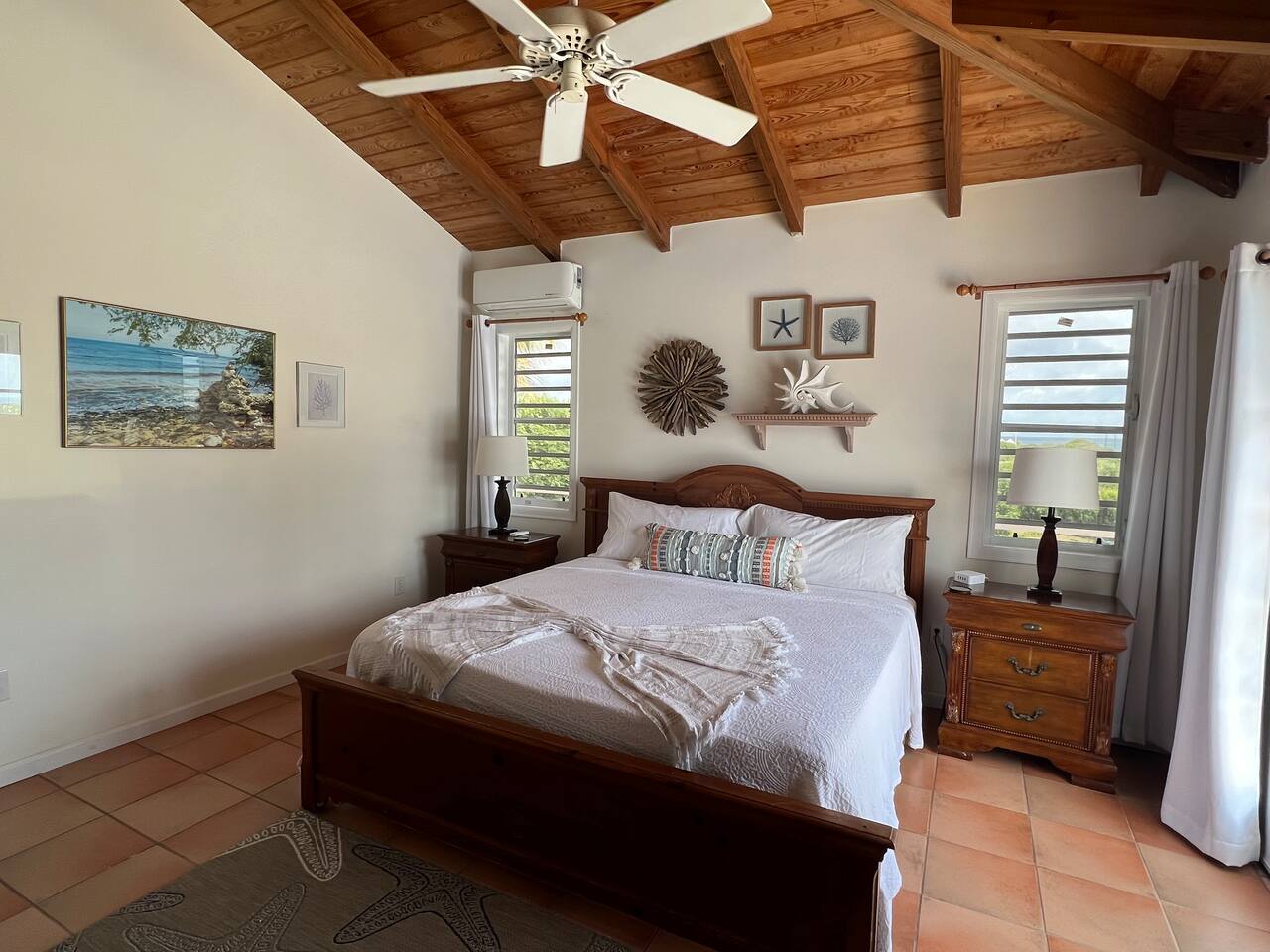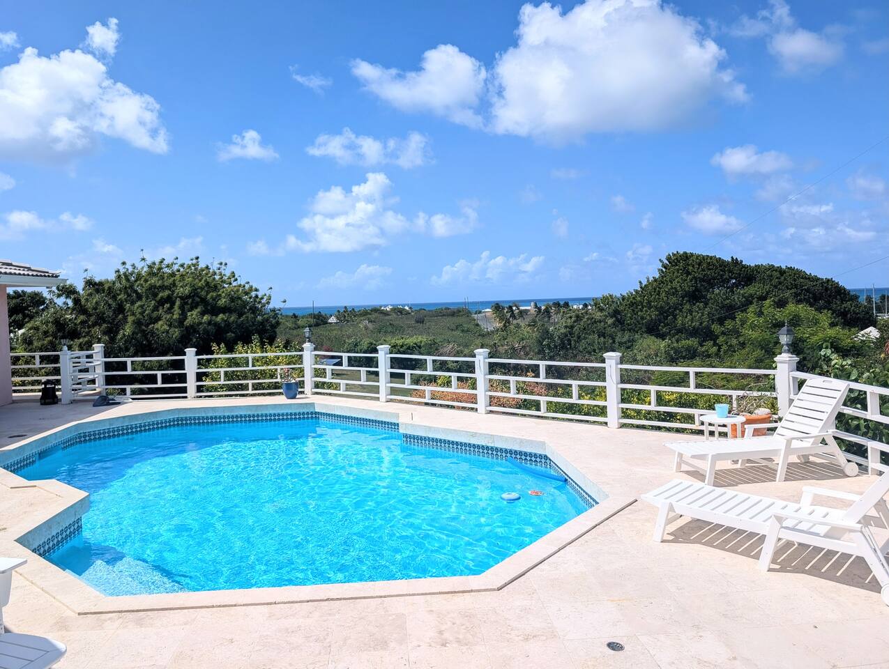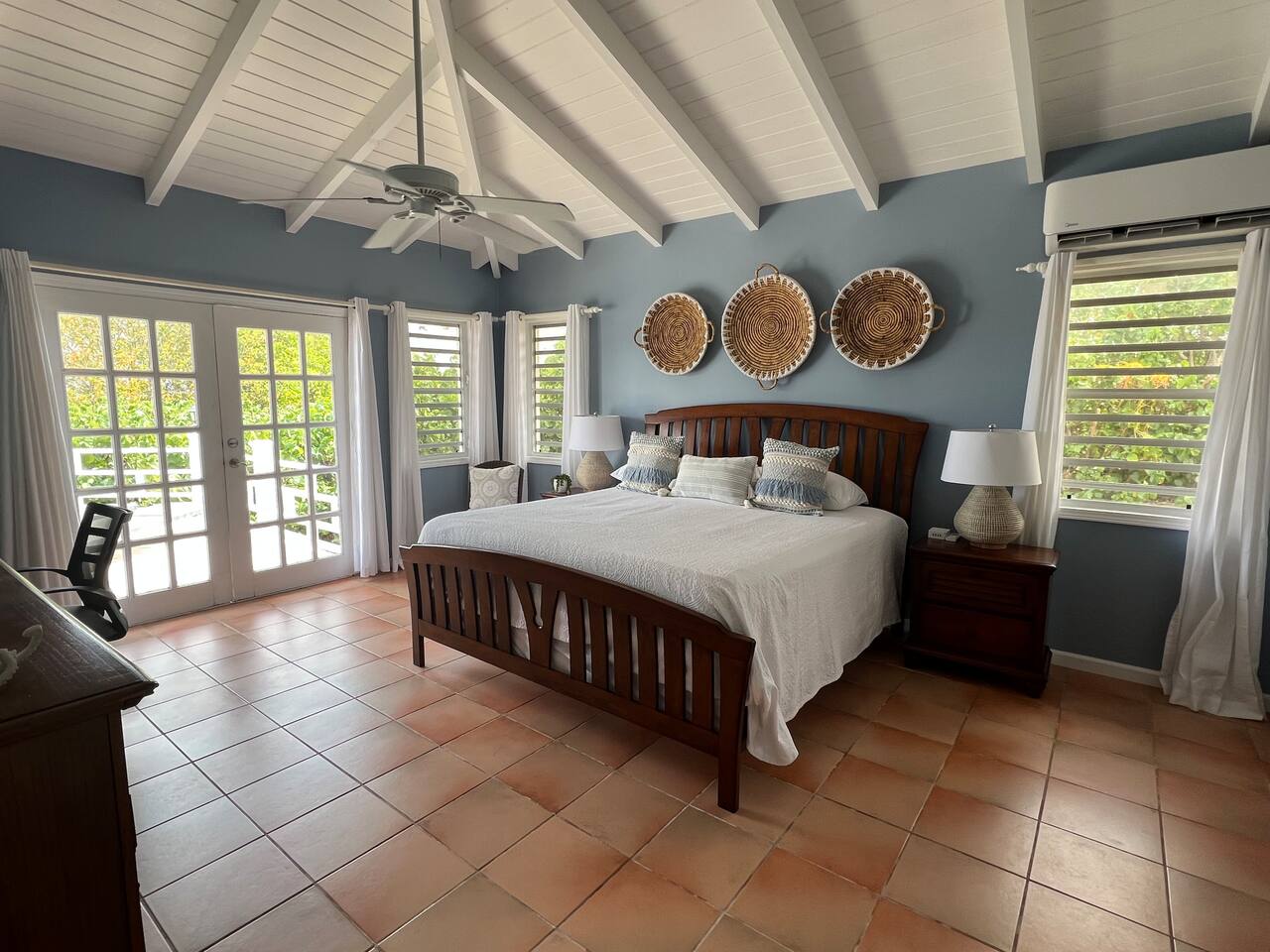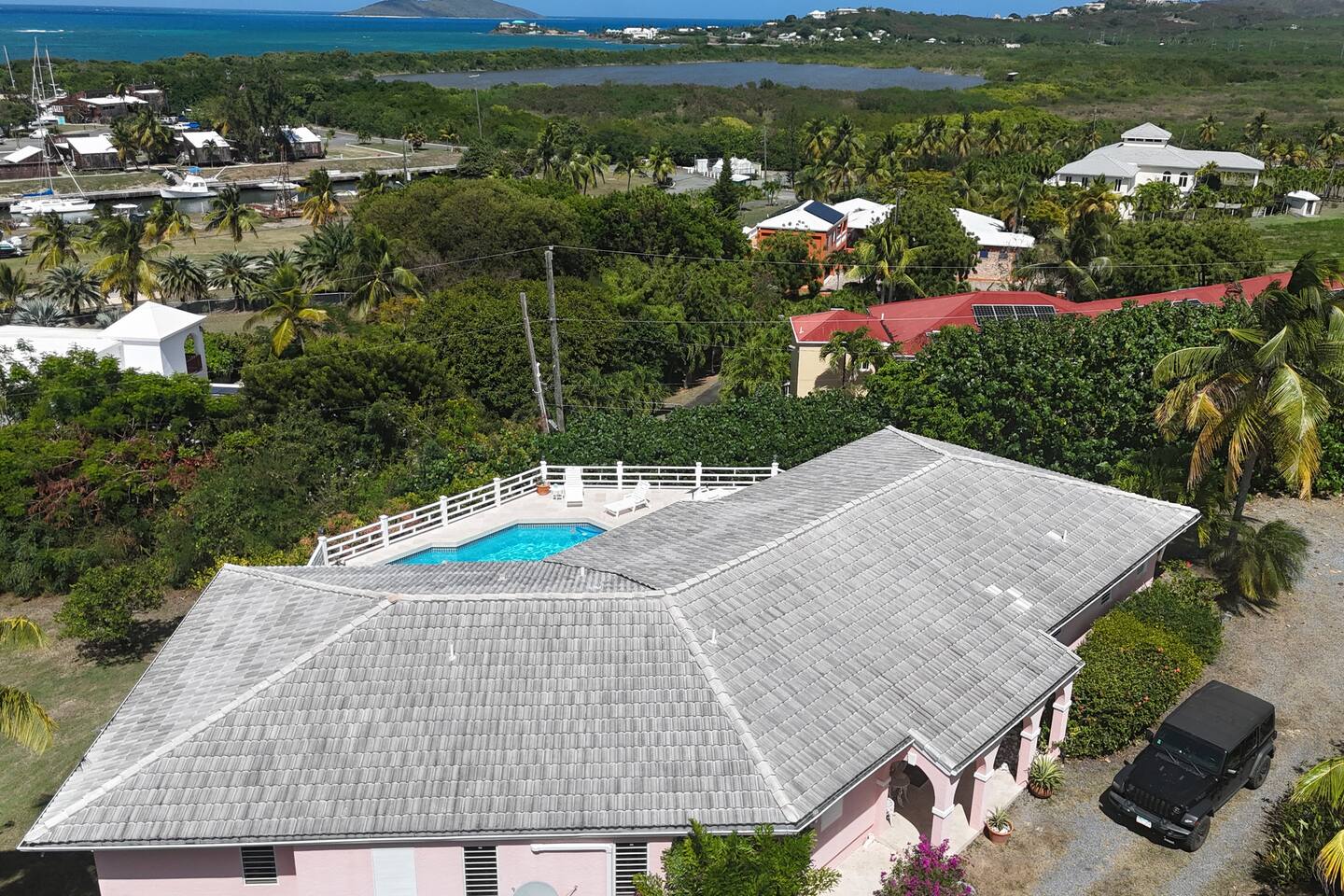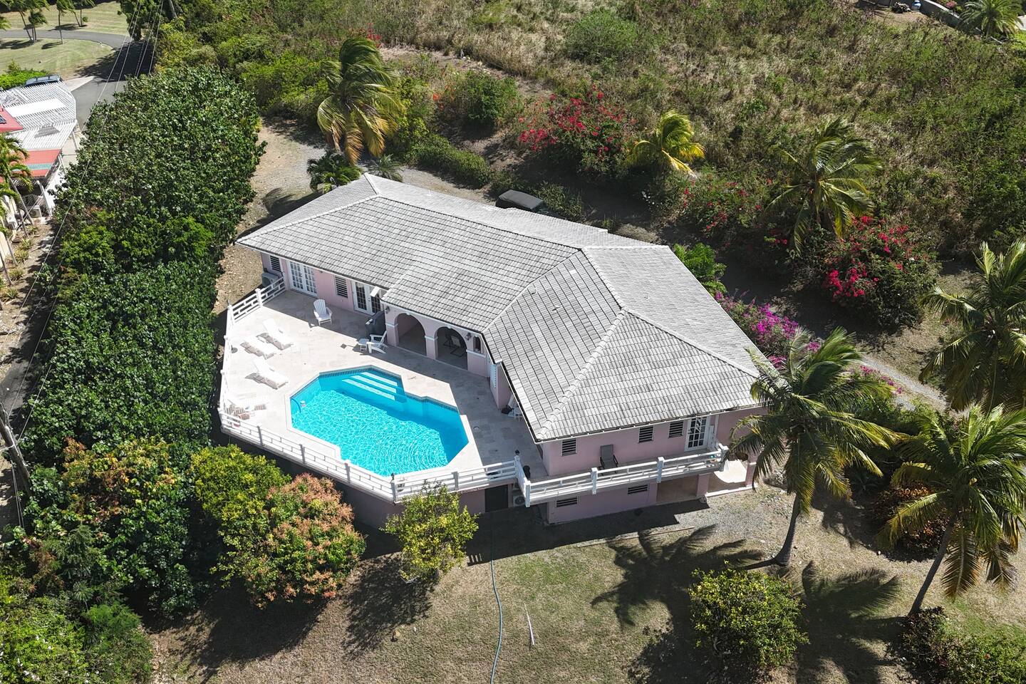 Beautiful private residence with 5 ensuite bedrooms (includes optional lower level apartment) entire house is fully air conditioned and all rooms have interior access. Magnificent views of Green Cay marina out to Buck Island. Well equipped for friends or families with small children. Located next to Buccaneer resort and golf course in gated Shoys Beach neighborhood with access to Shoys Beach. House is equipped with beach gear, gourmet kitchen, and remote office.