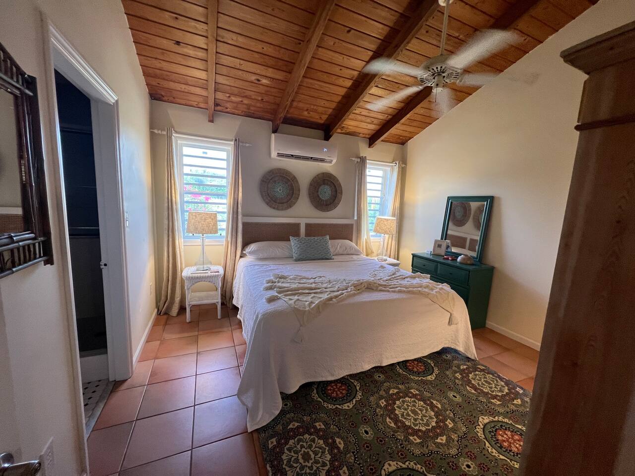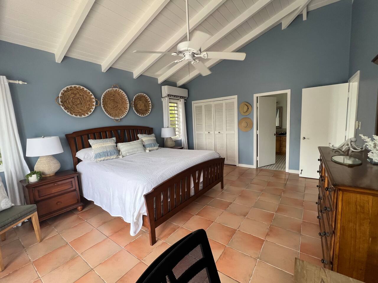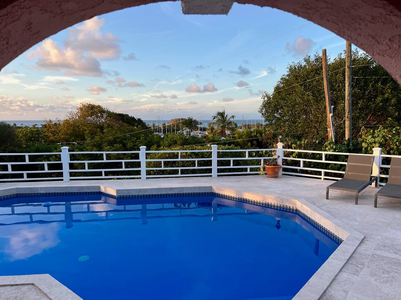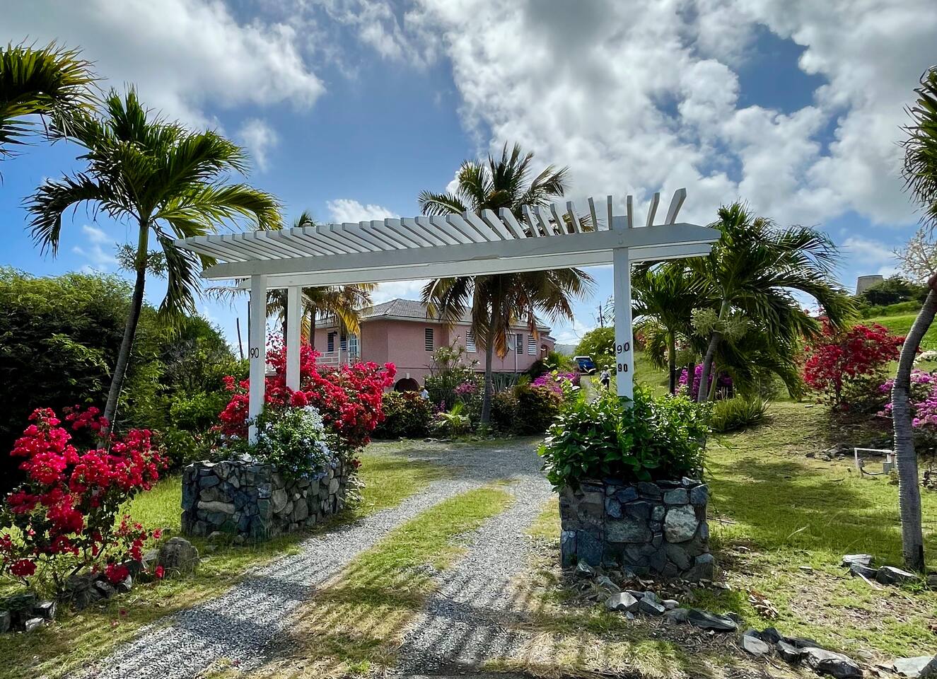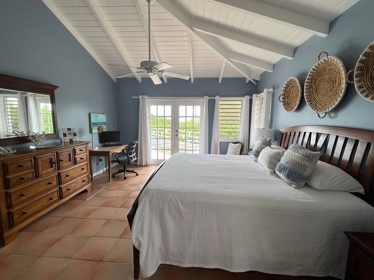 Beautiful private residence with 5 ensuite bedrooms (includes optional lower level apartment) entire house is fully air conditioned and all rooms have interior access. Magnificent views of Green Cay marina out to Buck Island. Well equipped for friends or families with small children. Located next to Buccaneer resort and golf course in gated Shoys Beach neighborhood with access to Shoys Beach. House is equipped with beach gear, gourmet kitchen, and remote office.