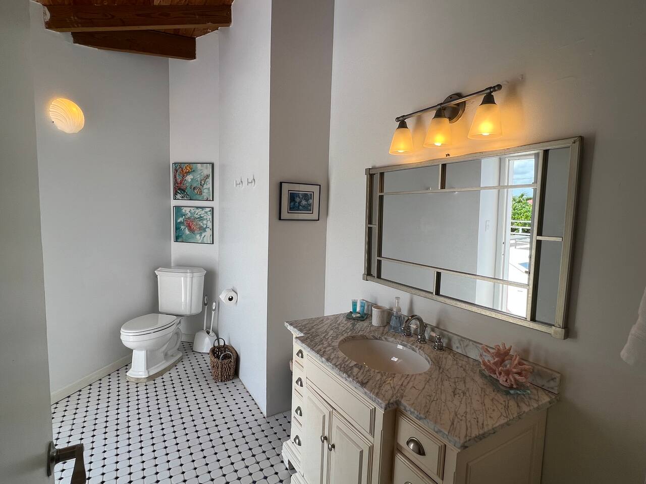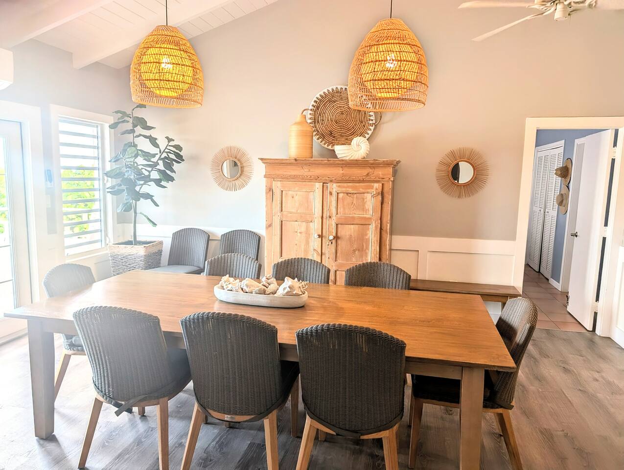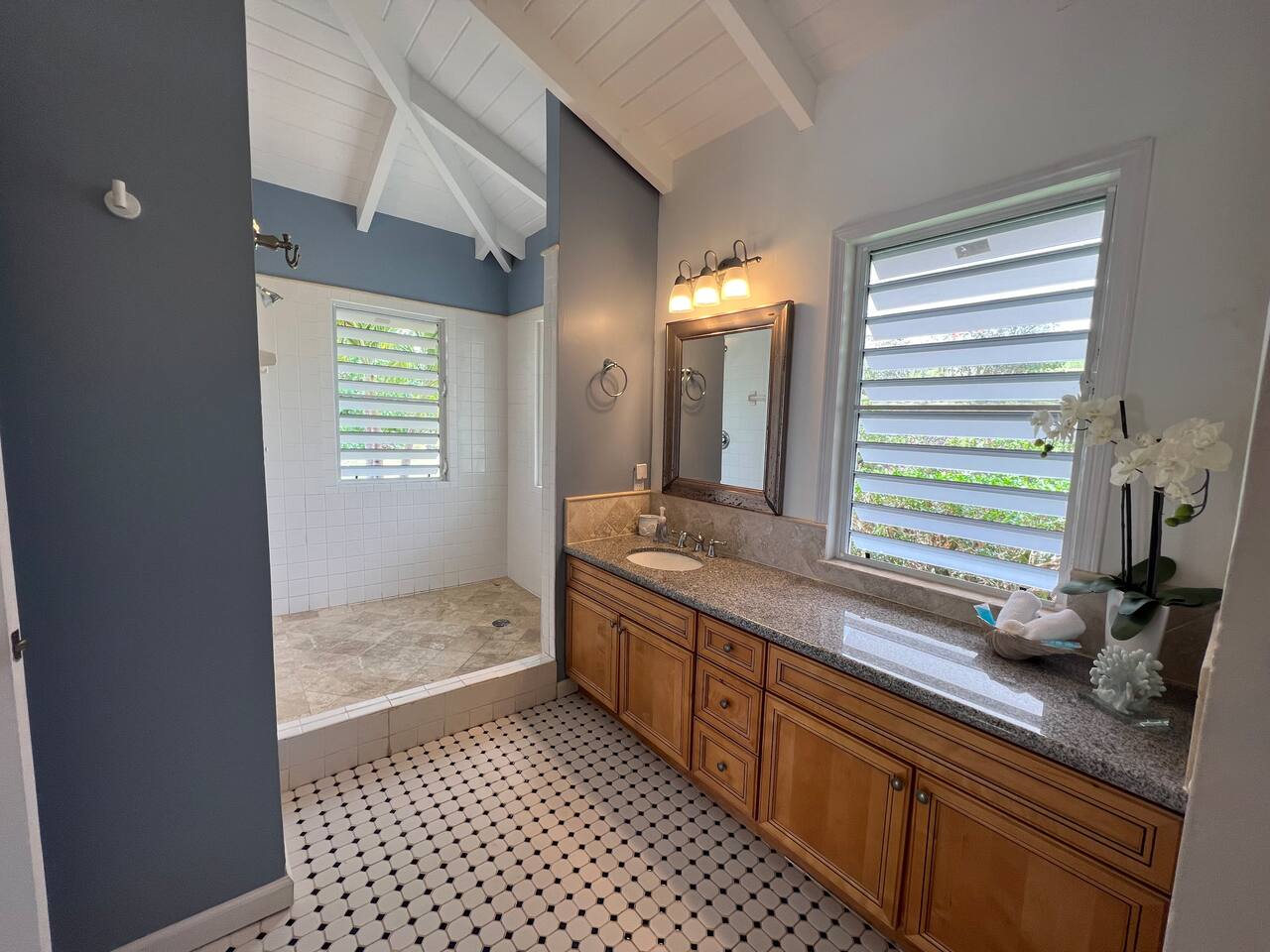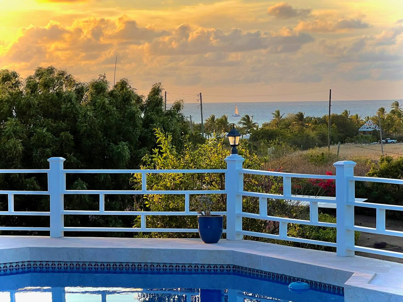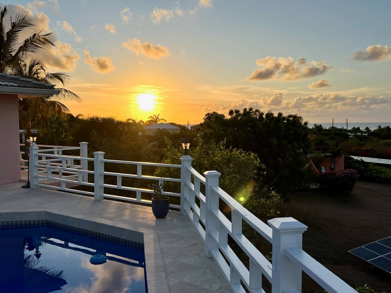 Beautiful private residence with 5 ensuite bedrooms (includes optional lower level apartment) entire house is fully air conditioned and all rooms have interior access. Magnificent views of Green Cay marina out to Buck Island. Well equipped for friends or families with small children. Located next to Buccaneer resort and golf course in gated Shoys Beach neighborhood with access to Shoys Beach. House is equipped with beach gear, gourmet kitchen, and remote office.