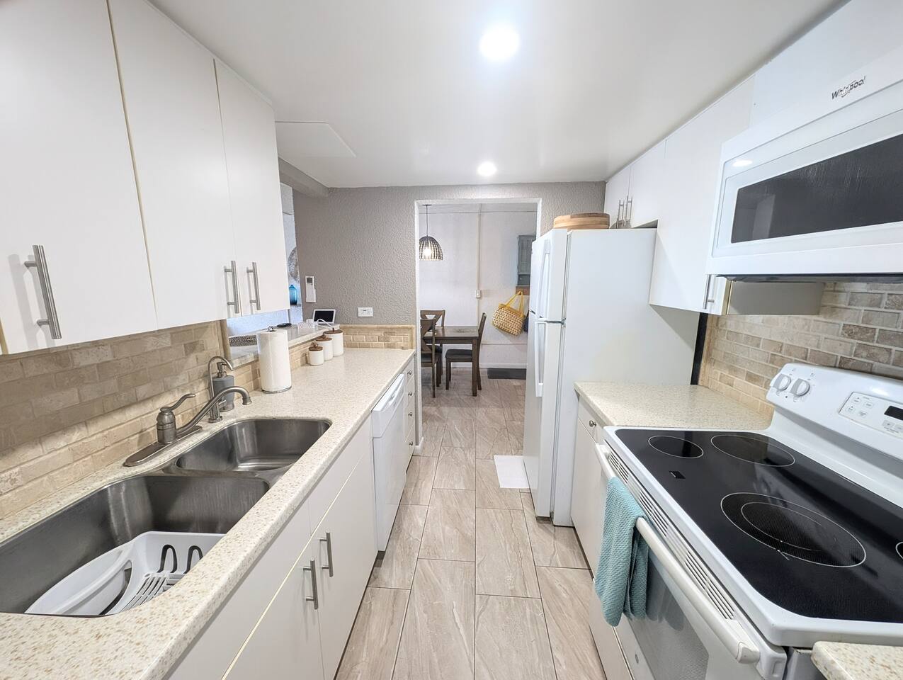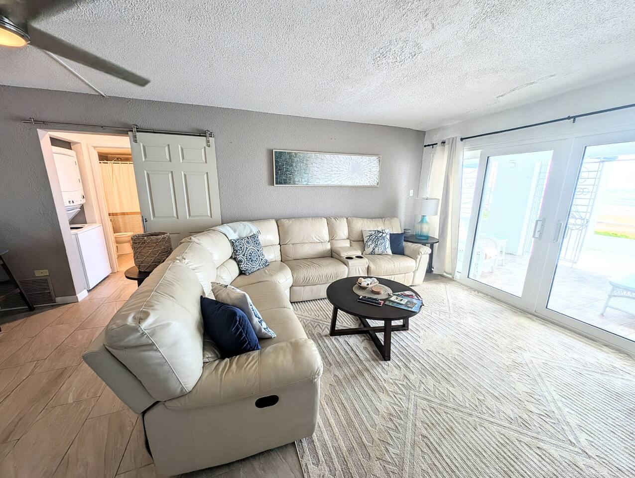 Please only park in designated spot for unit # 104 There is a large trash dumpster located at the end of the parking lot. Back patio gate keys are located on the blue cabinet to the right of the front door, please return. There is a foot was bucket located outside the back patio gate doors to remove sand before entering the unit from the beach.