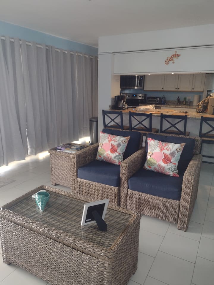 *Updated, New AC Unit in the Living Room! Relax on the balcony, take in the sea breeze, and gaze off in to the gorgeous Caribbean Sea. This 2 bed, 2 bath condo is in the gated community of Colony Cove. Just steps away is the community pool and the warm, inviting sea. Beautiful granite counters and stainless appliances accent the updated kitchen. You'll find everything you need to enjoy your peaceful vacation. Minutes to shopping, restaurants, grocery stores, and lots of fun island activities.