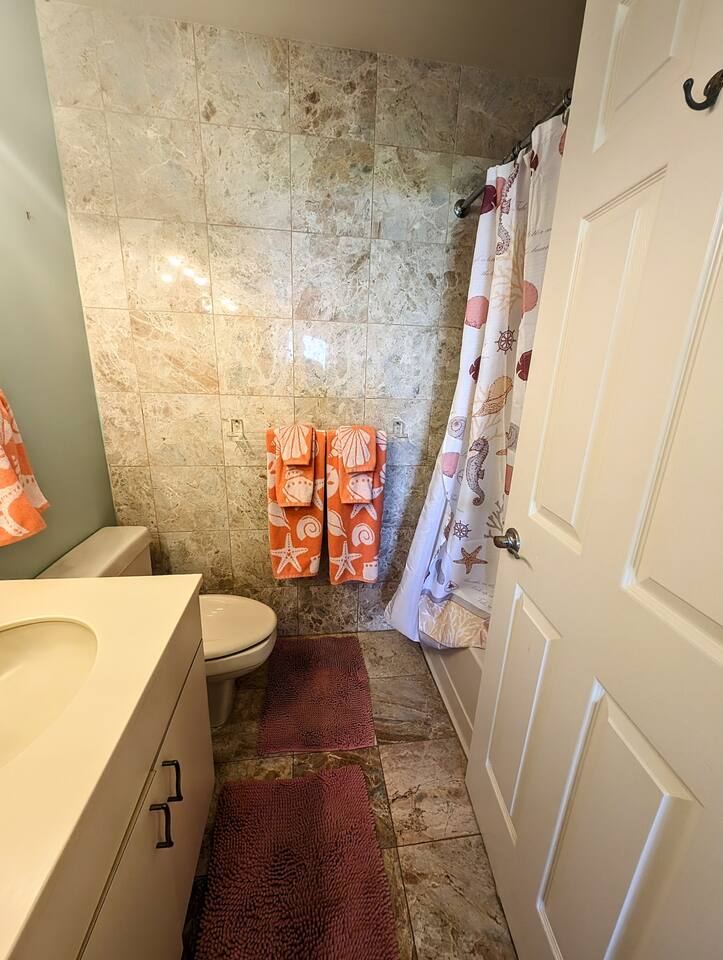 We really enjoyed this Condo. The location was GREAT! Right on the beach where you could walk and see sea turtles, even nests, manna rays, and wonderful sunrises. The Condo itself was easy to get to, and once we arrived was just as described. Very spacious for four people, the two bedrooms both had full bathrooms, the living area was large and the kitchen was fine. Everything worked well. The hosts gave me a call a couple days before our arrival with helpful information which was much appreciated. A very nice and restful stay. I definitely recommend this Condo to anyone, but especially good for a family, or like us two couples. The pool was also very nice and well maintained. Perfect for a restful day after arrival.