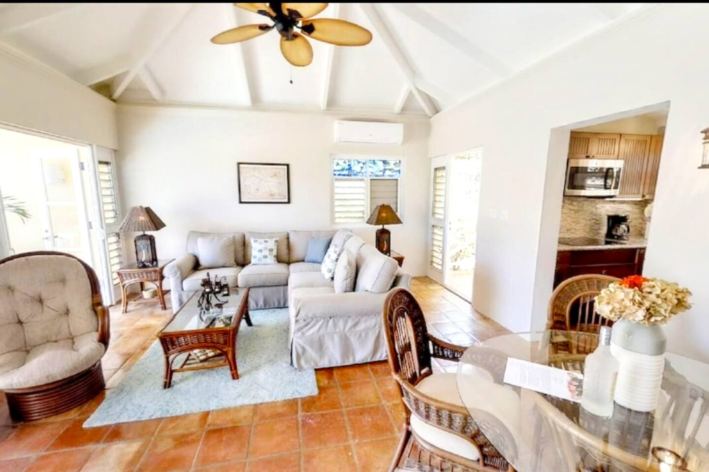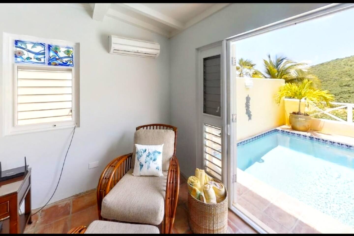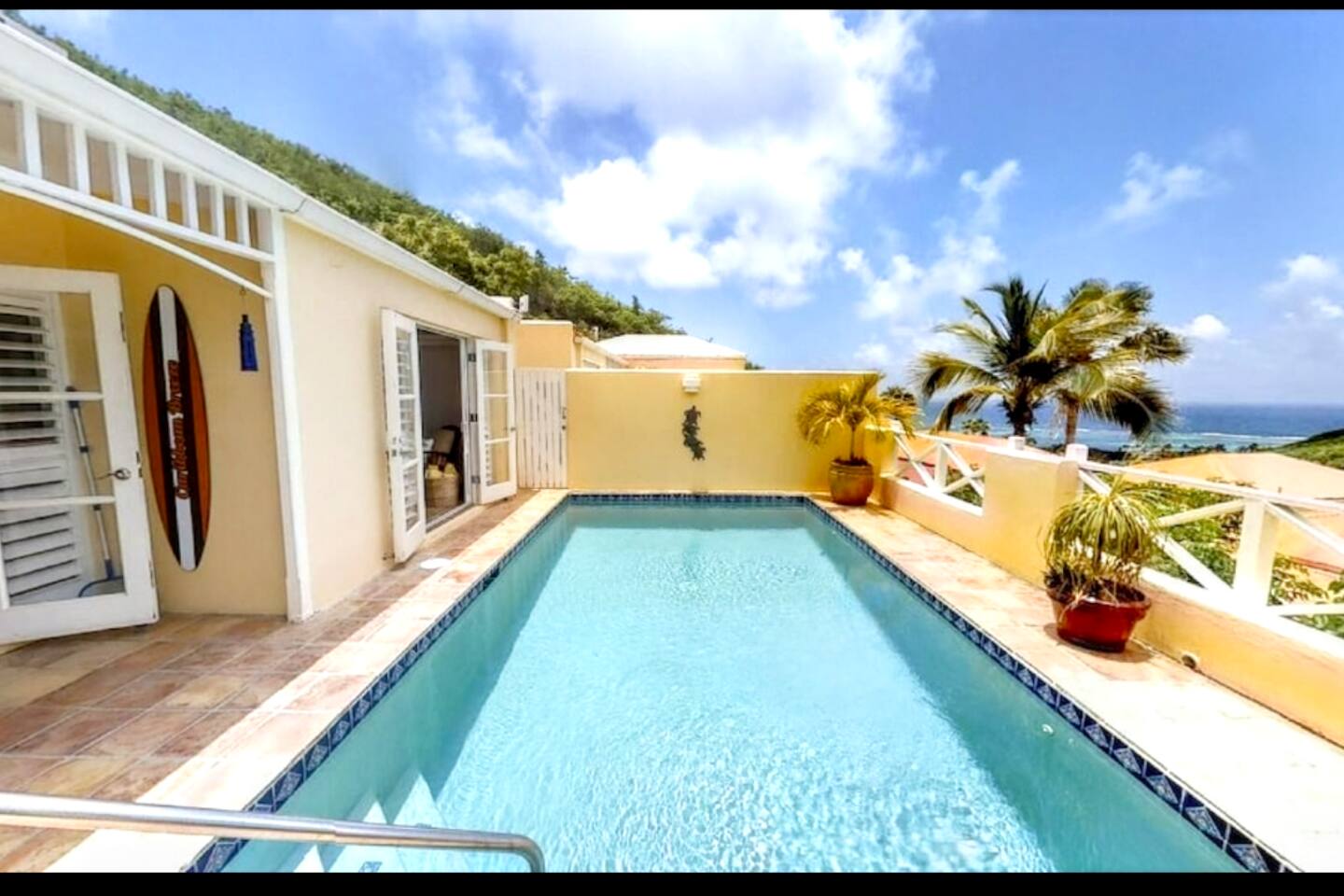 This villa was awesome, had a beautiful view, deep pool, well equipped kitchen, and plenty of towels and sheets. The neighborhood was well kept and had beautiful scenery. The villa was clean and organized. Having a washer and dryer was great. The AC also worked really well and kept the villa nice and cool. The power on the island goes out periodically and the first time it did, the water pump lost pressure. I texted the property manager and they responded within minutes and told us exactly what to do to fix it and even offered to come over and do it for us if we couldn’t figure it out. This was the only hiccup we had during our stay and it was dealt with very quickly. We will definitely stay here again when we come back to the island.