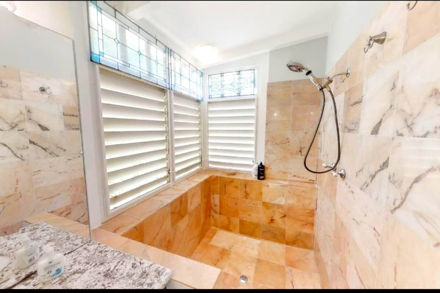 The patio with the pool is amazing..