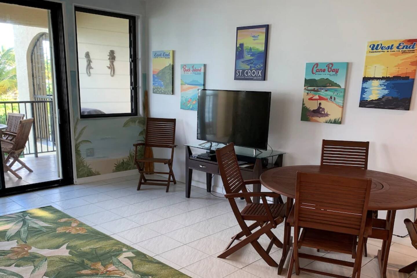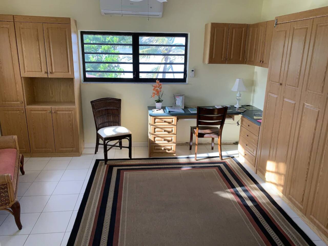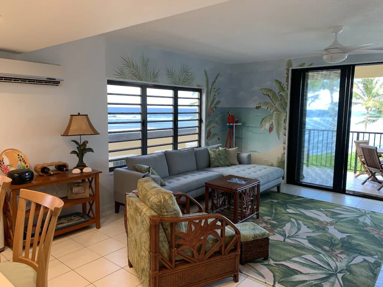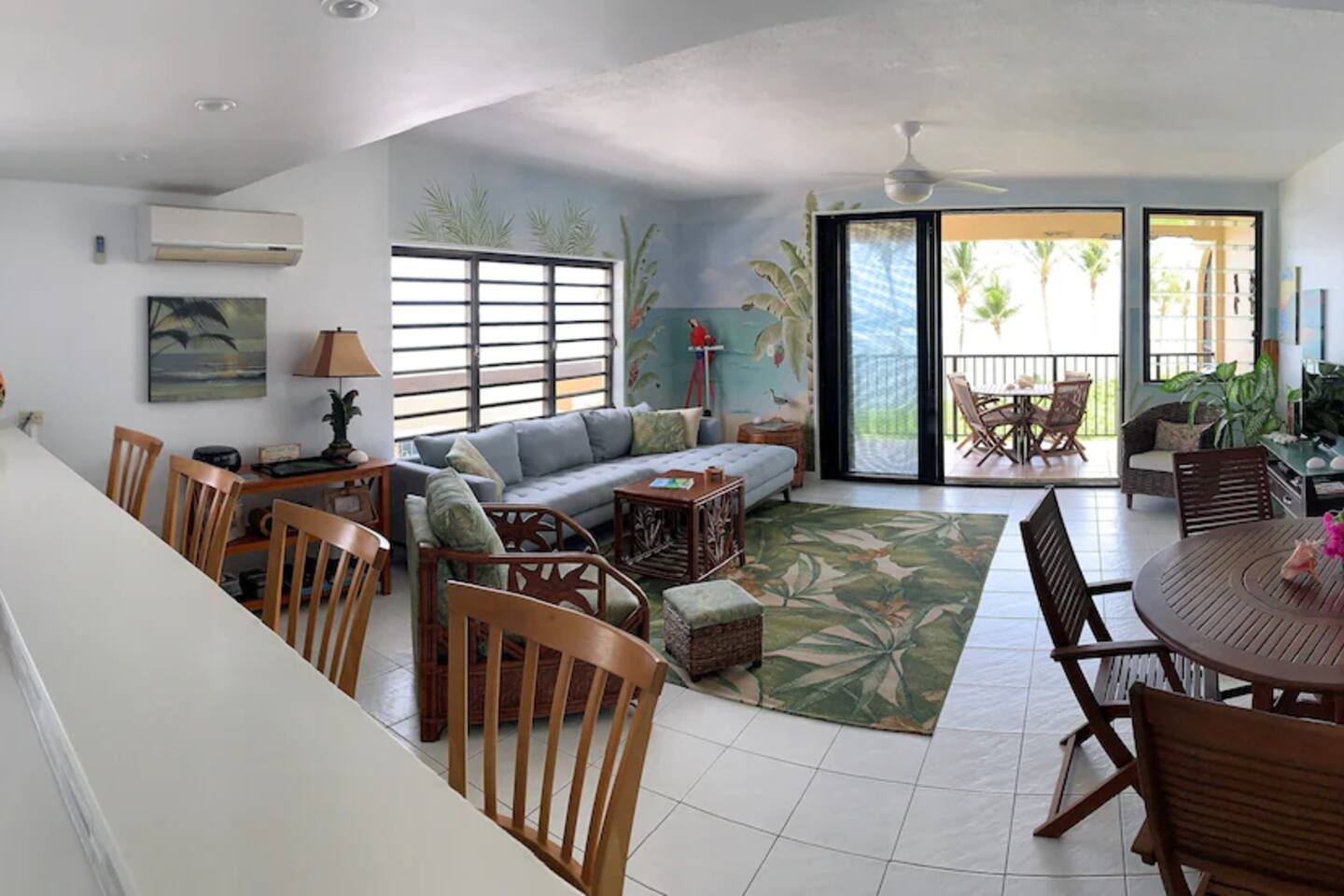 "Serenity by the Sea" is a lovely 1,360 square foot condo in the popular, gated community of Pelican Cove. This 2 bedroom, 2.5 bath end unit, which can comfortably sleep 6 people, offers stunning views of the Caribbean from every room. You are, literally, just steps away from the sea and, as you listen to the sound of the waves and feel the warm breeze off the water from the unit's two balconies, you will be delighted that you are here. On the main floor, the kitchen and living room are open concept. The updated kitchen is fully-appointed with a double-door refrigerator, range, microwave, dishwasher, and coffee bar. You can eat at the large kitchen counter, which has 4 stools, for a casual meal or dine at a table in the spacious living room. Through the living room sliding glass doors, you can relax on the balcony and enjoy the view of swaying palms and the beautiful Caribbean Sea. The main floor also provides an office with a full size murphy bed and a half bath. There are two ensuite bedrooms on the second floor. The master bedroom has a king size bed, ensuite bathroom, and a balcony to view the palm lined beach. The guest bedroom comes complete with a comfortable queen size bed and ensuite bathroom. The unit is equipped with linens, bath and beach towels, along with a washer and dryer. The unit features air-conditioning, wi-fi, and cable. Take a dip in the large swimming pool and enjoy the open-air hot tub. The grounds are always well maintained and you will enjoy the lush, tropical plants growing throughout the property. Since this unit is only 200 ft. from the white sand beach, it is stocked with a cooler, beach chairs, beach towels, and "noodles" for your use. If you just want to relax and not drive anywhere, The Palms resort is located right next door. It offers a great bar and restaurant which serves breakfast, lunch, and dinner daily, just steps away from the beach. They offer a delicious Sunday brunch, too. The Palms provides entertainment as well. There are endless options for recreation on St Croix. You can enjoy 3 national parks while you are here: Christiansted National Historic Site, where you can visit 7 historic buildings, and enjoy shopping and restaurants along the boardwalk; Buck Island Reef National Monument, where you can enjoy snorkeling, picnicking, and hiking; and Salt River National Historical Park and Ecological Preserve, where you can kayak and explore archeological sites. Christiansted is just a 10 minute drive from "Serenity by the Sea", and there are several restaurants and grocery stores nearby for your convenience. If you have any need for assistance, there is an on-call property manager available to you 24/7 during your stay. We hope you enjoy all this beautiful island has to offer!