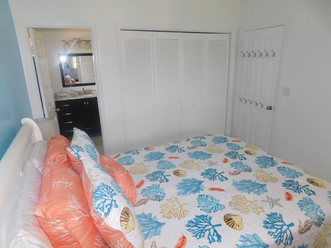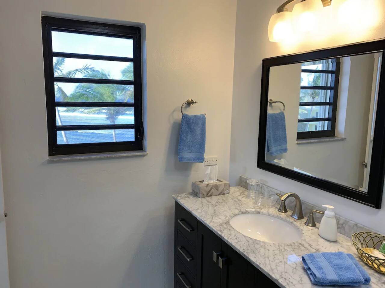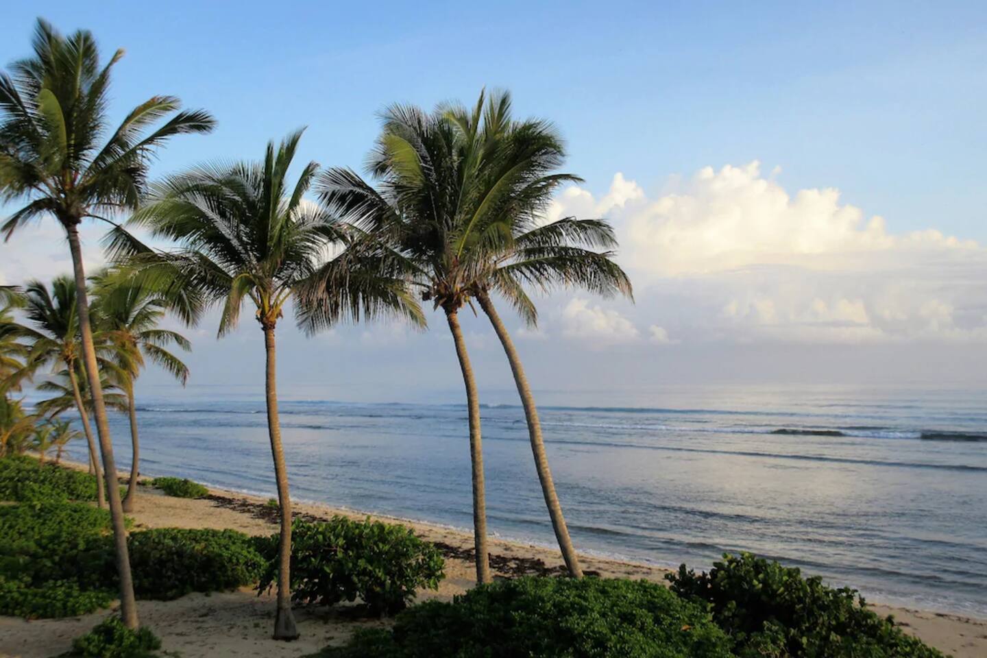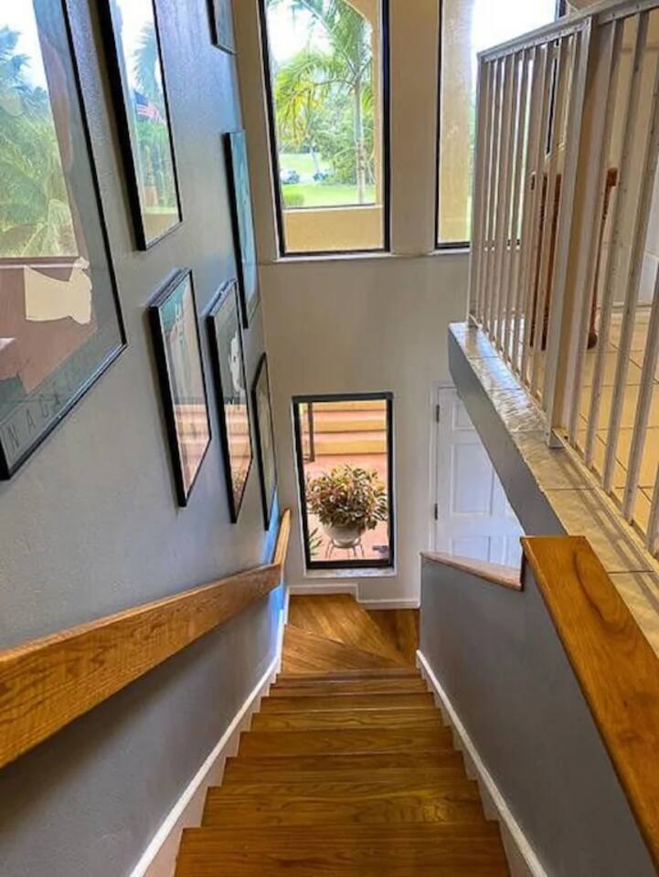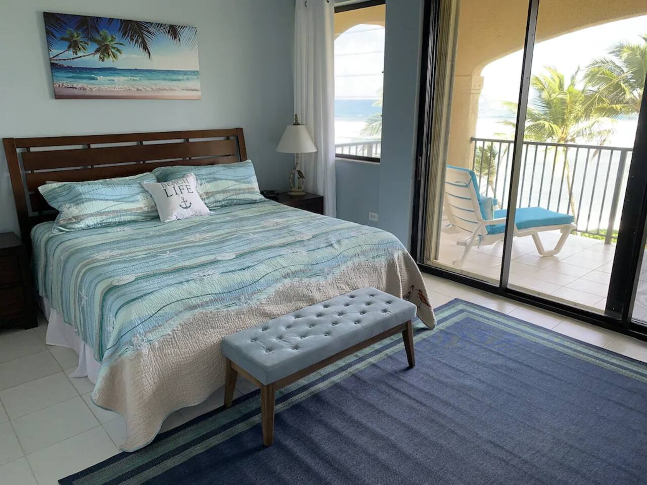 "Serenity by the Sea" is a lovely 1,360 square foot condo in the popular, gated community of Pelican Cove. This 2 bedroom, 2.5 bath end unit, which can comfortably sleep 6 people, offers stunning views of the Caribbean from every room. You are, literally, just steps away from the sea and, as you listen to the sound of the waves and feel the warm breeze off the water from the unit's two balconies, you will be delighted that you are here. On the main floor, the kitchen and living room are open concept. The updated kitchen is fully-appointed with a double-door refrigerator, range, microwave, dishwasher, and coffee bar. You can eat at the large kitchen counter, which has 4 stools, for a casual meal or dine at a table in the spacious living room. Through the living room sliding glass doors, you can relax on the balcony and enjoy the view of swaying palms and the beautiful Caribbean Sea. The main floor also provides an office with a full size murphy bed and a half bath. There are two ensuite bedrooms on the second floor. The master bedroom has a king size bed, ensuite bathroom, and a balcony to view the palm lined beach. The guest bedroom comes complete with a comfortable queen size bed and ensuite bathroom. The unit is equipped with linens, bath and beach towels, along with a washer and dryer. The unit features air-conditioning, wi-fi, and cable. Take a dip in the large swimming pool and enjoy the open-air hot tub. The grounds are always well maintained and you will enjoy the lush, tropical plants growing throughout the property. Since this unit is only 200 ft. from the white sand beach, it is stocked with a cooler, beach chairs, beach towels, and "noodles" for your use. If you just want to relax and not drive anywhere, The Palms resort is located right next door. It offers a great bar and restaurant which serves breakfast, lunch, and dinner daily, just steps away from the beach. They offer a delicious Sunday brunch, too. The Palms provides entertainment as well. There are endless options for recreation on St Croix. You can enjoy 3 national parks while you are here: Christiansted National Historic Site, where you can visit 7 historic buildings, and enjoy shopping and restaurants along the boardwalk; Buck Island Reef National Monument, where you can enjoy snorkeling, picnicking, and hiking; and Salt River National Historical Park and Ecological Preserve, where you can kayak and explore archeological sites. Christiansted is just a 10 minute drive from "Serenity by the Sea", and there are several restaurants and grocery stores nearby for your convenience. If you have any need for assistance, there is an on-call property manager available to you 24/7 during your stay. We hope you enjoy all this beautiful island has to offer!