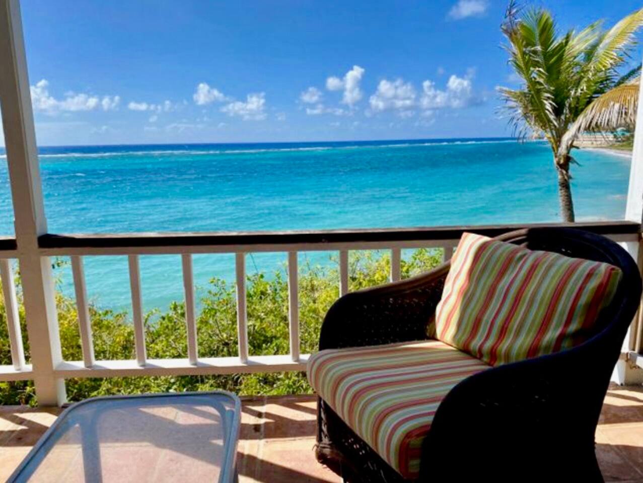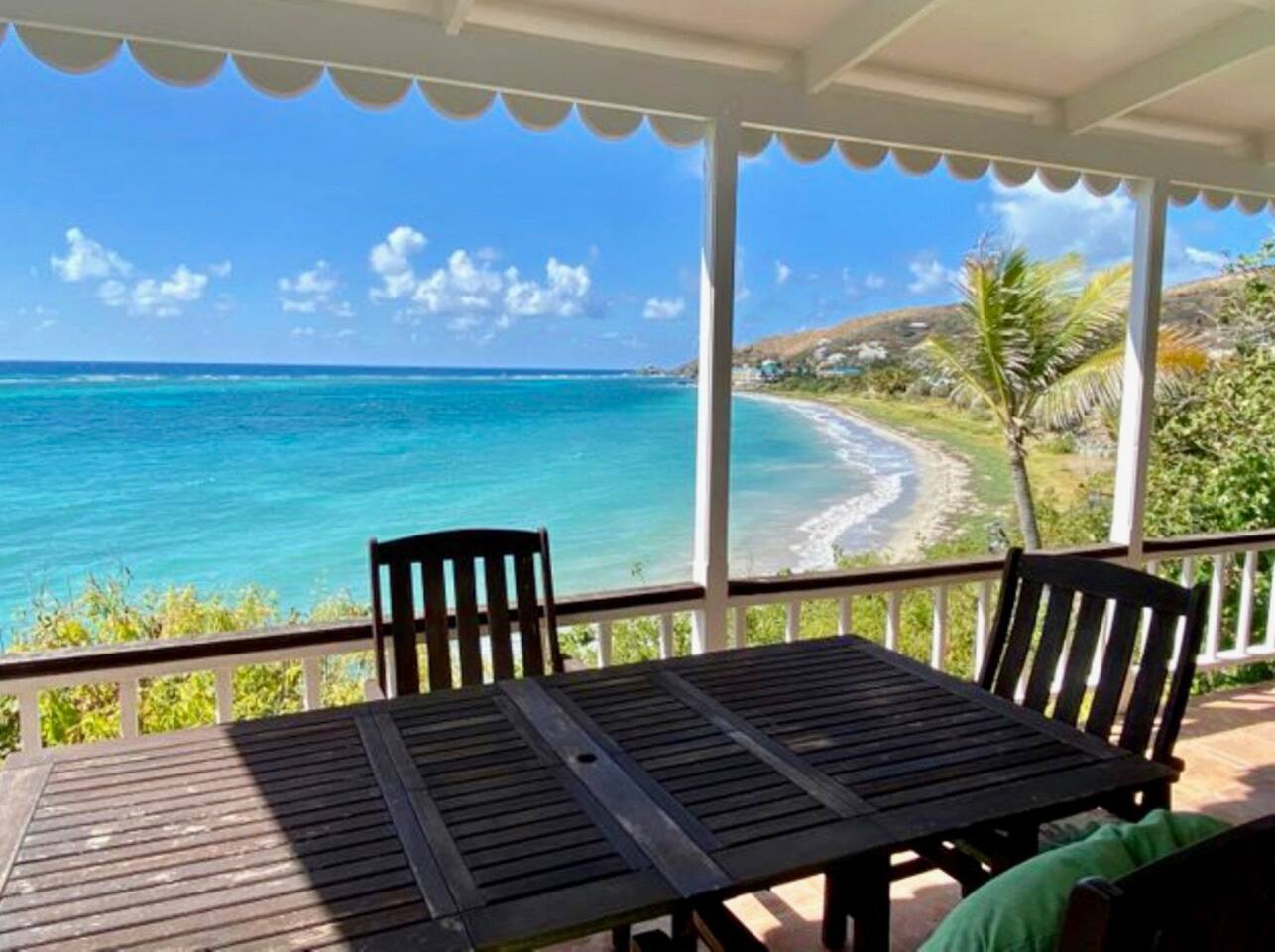 From the moment you drive through the privacy gate and take in the breath taking views, you will feel a sense of peace and relaxation. Sit back and listen to the gentle waves from this gorgeous 2bed 2bath villa on St Croix's South Shore. Relax by the private in-ground saltwater pool and dream the day away or walk down the steps to the inviting Caribbean Sea and dig your toes in the sand. The bedrooms are on opposite wings so perfect for 2 couples or families that desire a little privacy.