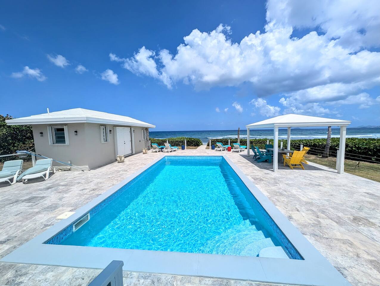 Relax in the private pool and listen to the waves crash on the patio of this fabulous 3 bedroom 4 bath home in a premier gated community. Silver Travertine Tile accents the salt water pool, and pavers lead you to the warm Caribbean Sea just steps away. All 3 bedrooms are en-suite, with the master featuring a huge walk-in shower. The large kitchen with wrap around bar seating opens to the living and dining areas, allowing your family and friends to enjoy precious time together! Paradise found!